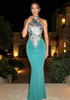 Halter Floral Sequin Embroidered Maxi Dress Green
