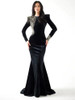 Long Sleeve Crystal Shoulder Maxi Velvet Dress Black