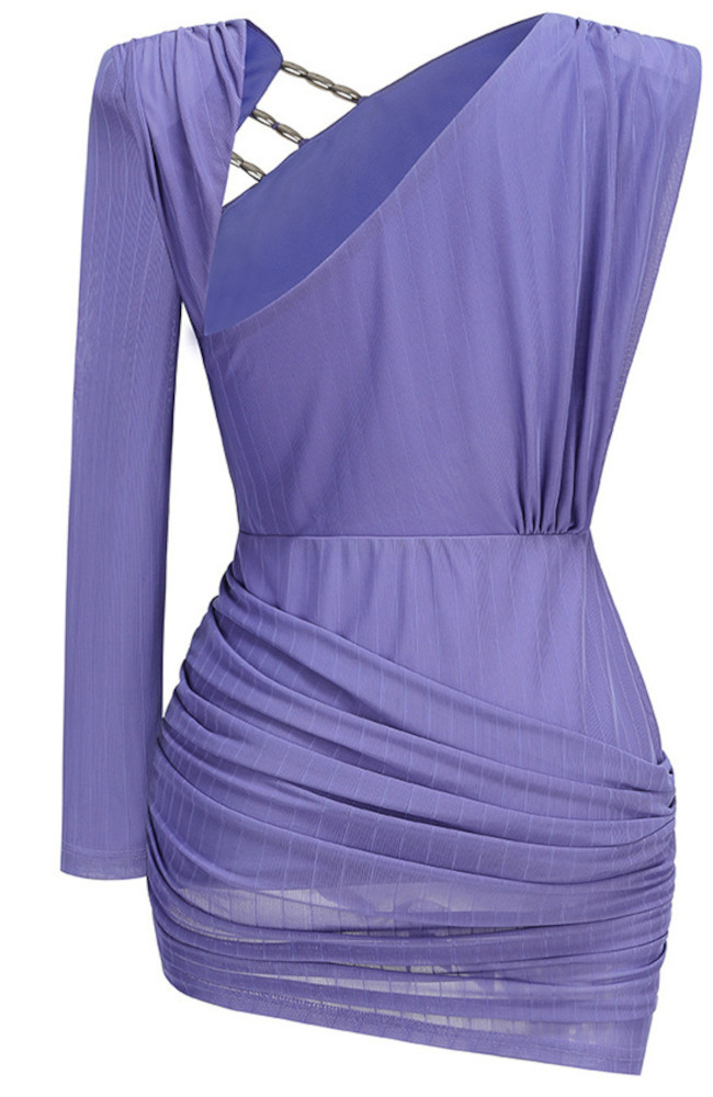 One Sleeve Draped Cut Out Dress Purple